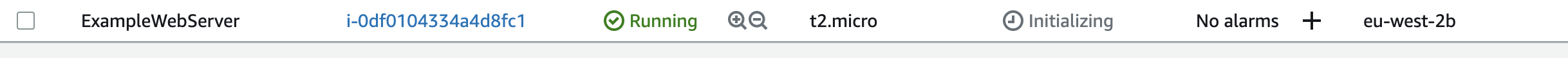 Whoop! You have just created your first Infrastructure on AWS! Log in to your AWS console, navigate to your EC2 page and you should see your ExampleWebServer already running.